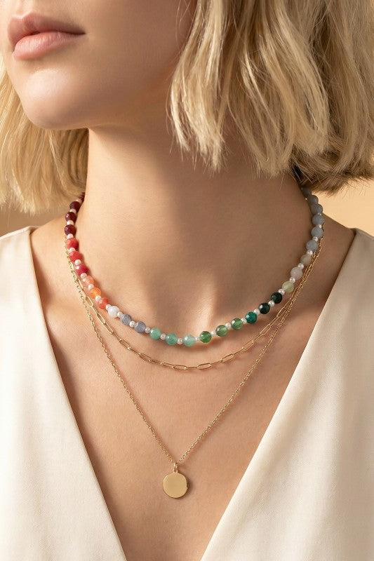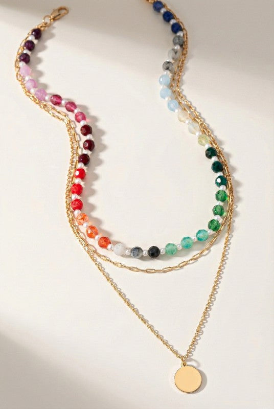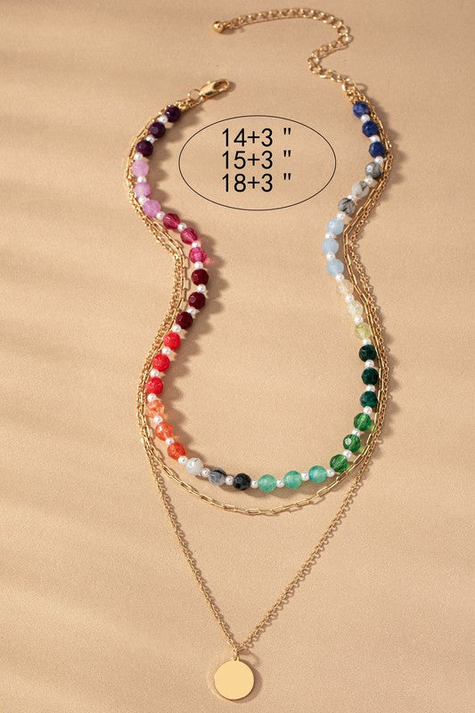 3 row chain and chunky bead necklace, featuring: