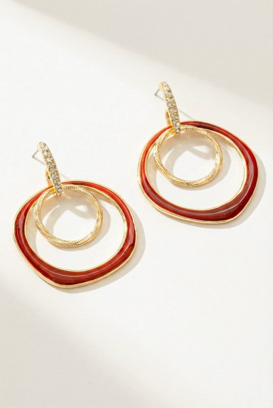 Gold-tone drop earrings featuring a modern double-hoop design.