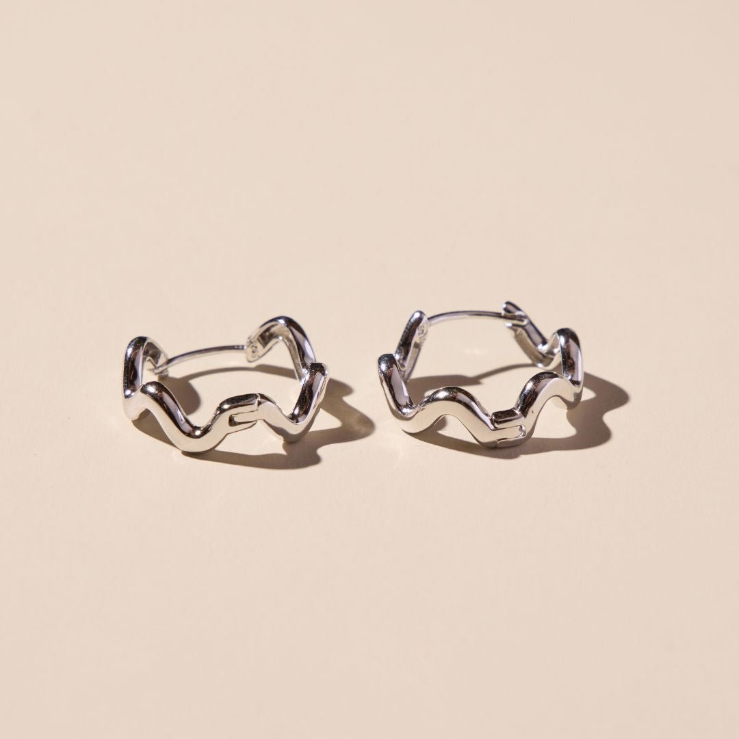 Add a fun statement to your everyday stack with the Silver Squiggle hoops. Featuring a wave-like design they bring a bold yet effortless touch to any look.