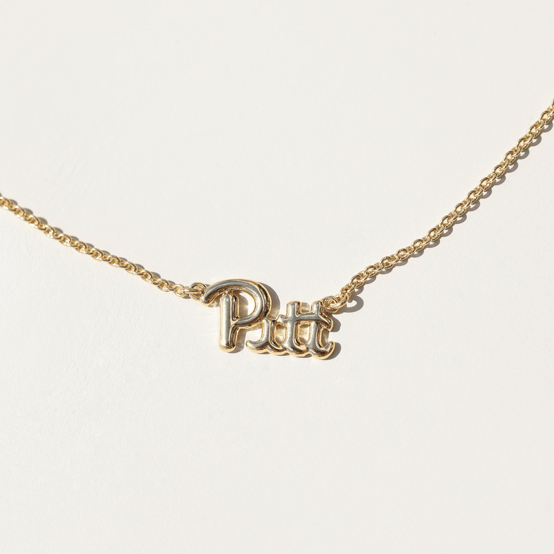 Get game day ready with University of Pittsburgh Initial Necklace. This necklace features a 14k gold plated chain with the the Pitt Initials.