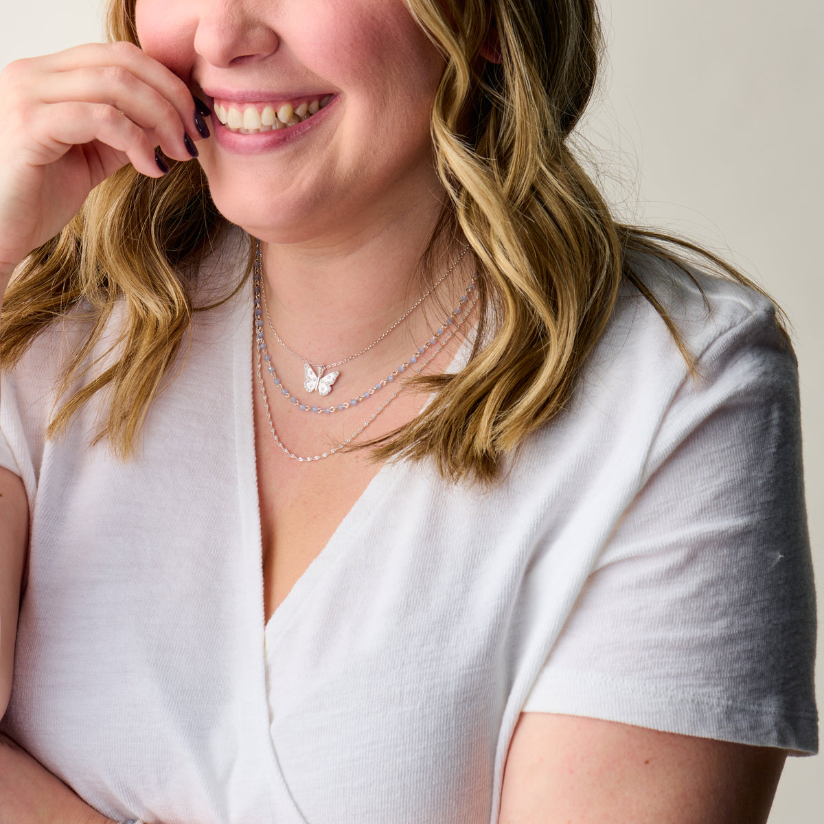 Butterflies show us that change is beautiful. This delicate necklace features a graceful butterfly silhouette surrounded by crystal accents—symbolizing transformation, renewal, and the freedom to evolve. Crafted in your choice of sterling silver or 14k gold vermeil, it’s an adjustable, precious piece made to move with you.