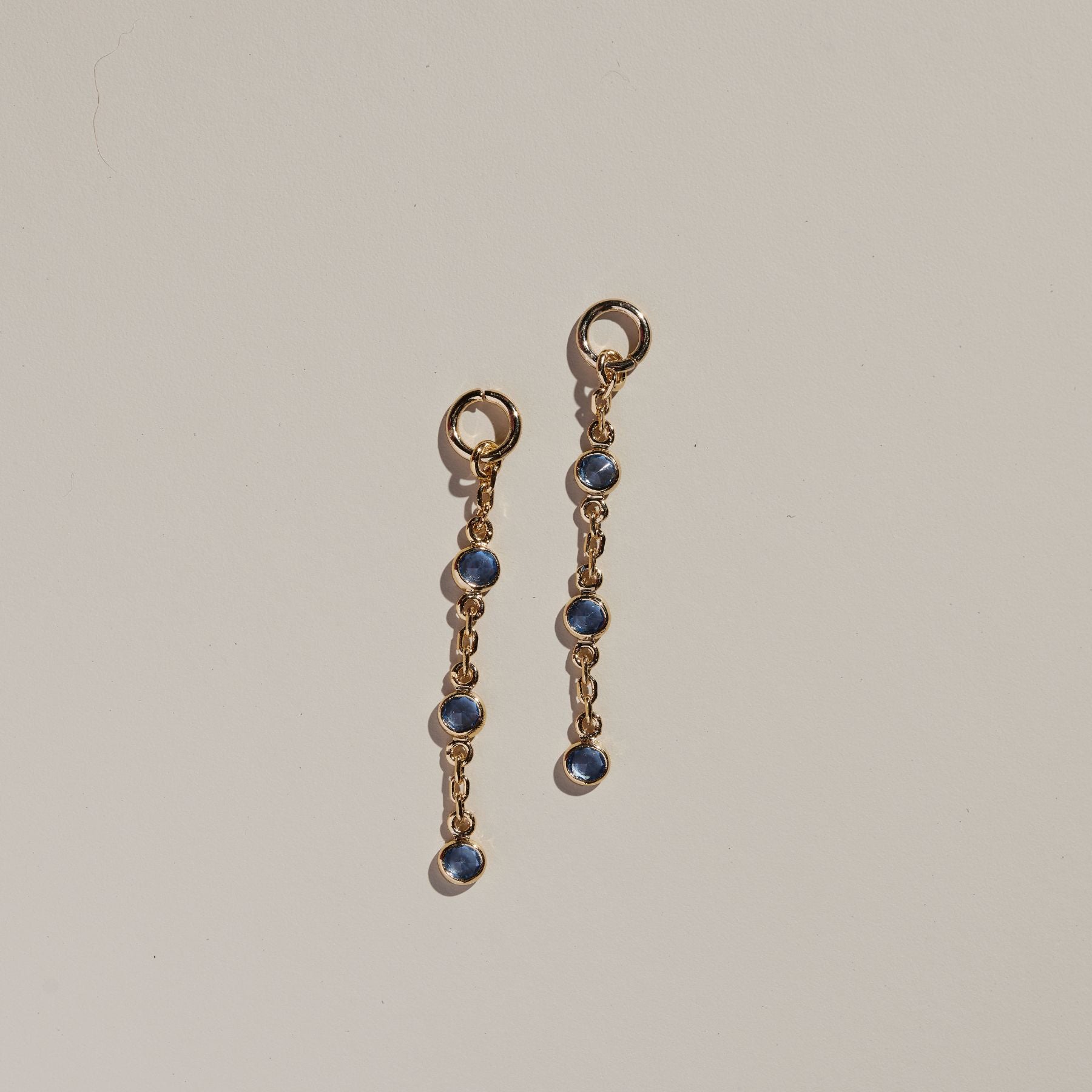 Take your ear stack to the next level with the Blue Crystal Chain Charms. Add them on a hoop or huggie, layer with a charm or two, or wear them alone!