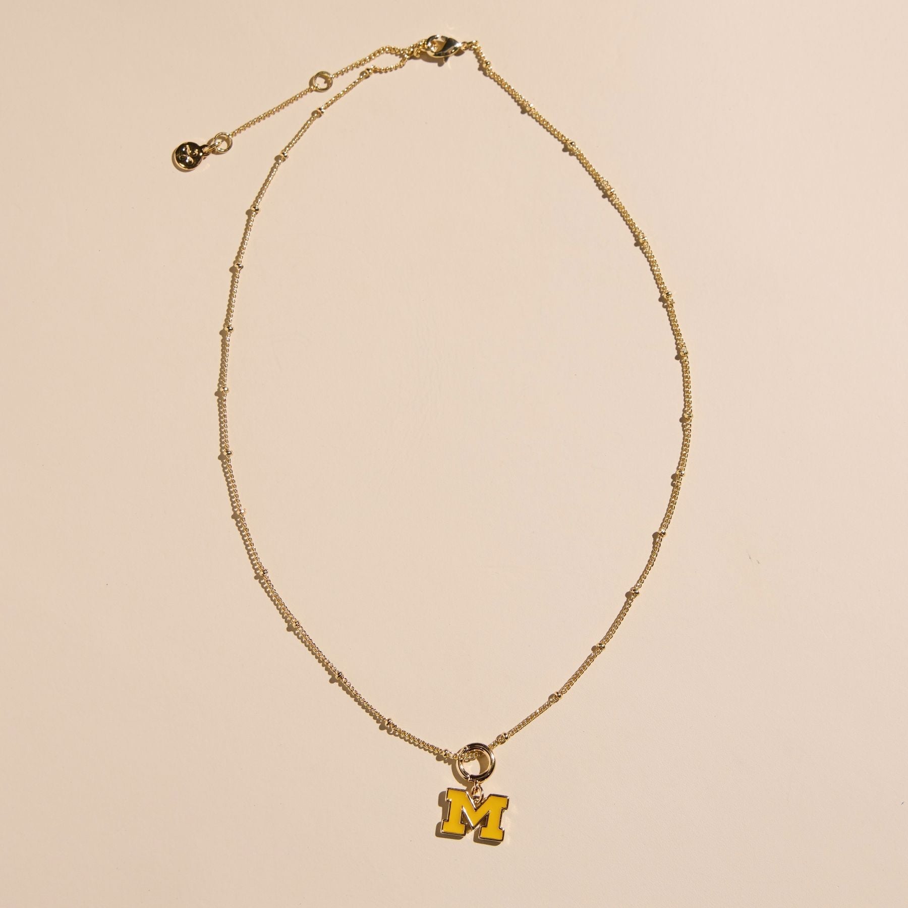The University of Michigan Charm Necklace features our officially licensed Michigan charm on our Saturn Chain Necklace for a customized gameday look. Perfect for showing your Michigan pride, this necklace can be worn on its own or layered for a personalized gameday look.