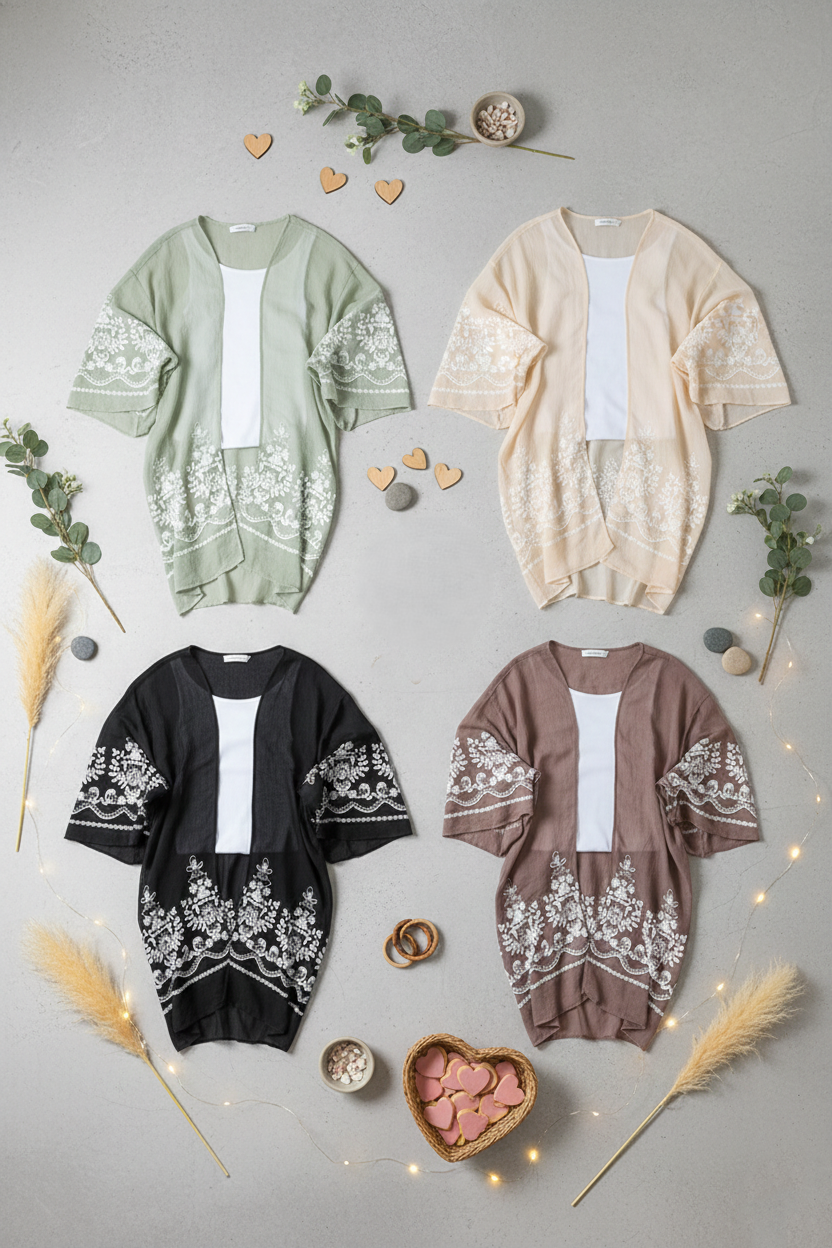 A lovely blend of wanderlust charm and Western romance, this look captures the sweetness of Valentine’s season with an effortless, free-spirited touch. Featuring a soft embroidered kimono layered over a delicate, feminine silhouette, the naturally crinkled texture and airy flow create a dreamy, lived-in elegance. Paired with classic Western boots, it’s the perfect outfit for a romantic day out, a sunset stroll, or celebrating love with a hint of rustic charm