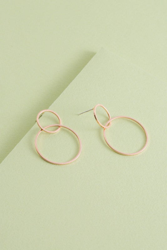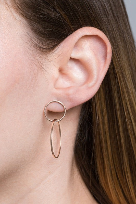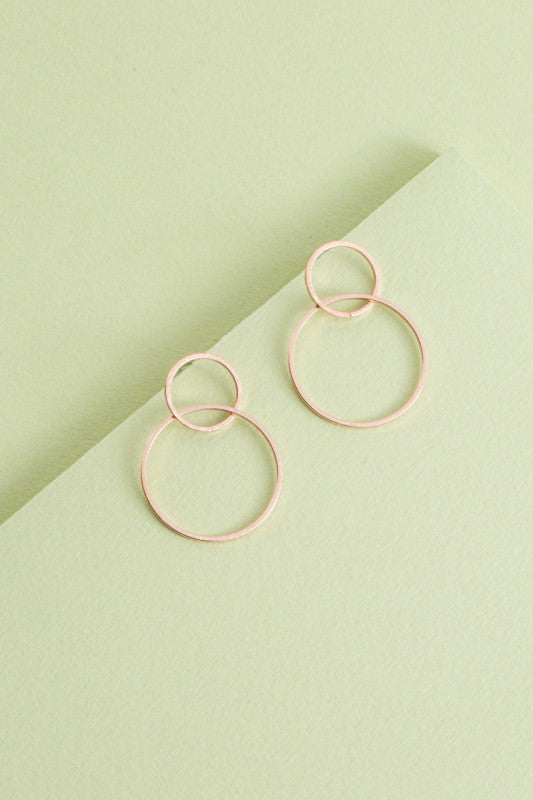Two entangled brushed circles featuring a delicate dangle.