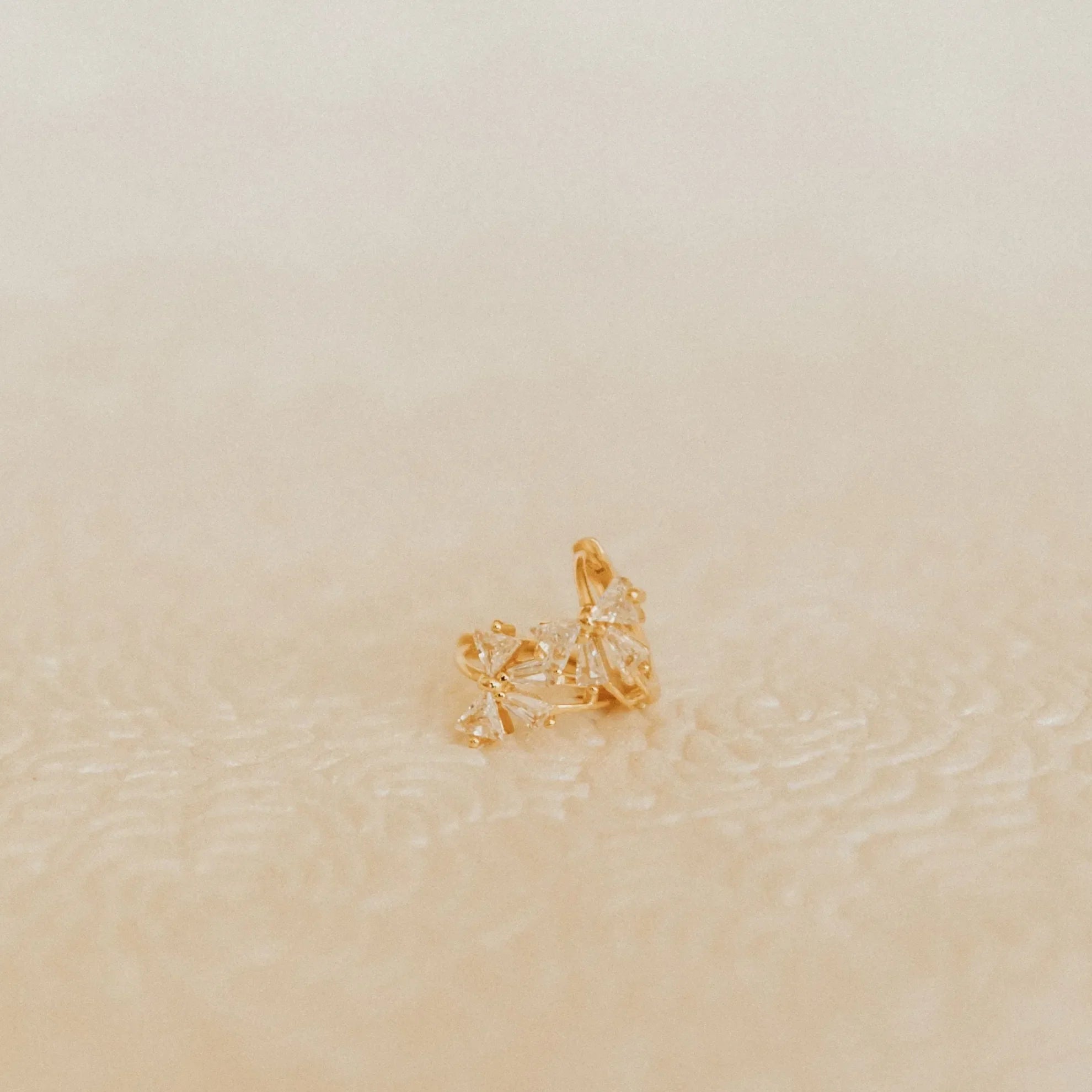 These Lucy Diamond Bow Hoops are the perfect accessory to complete any outfit. They are sterling silver based gold vermeil and are hypoallergenic, tarnish and wear resistant, and perfect for sensitive ears. They measure a dainty 10mm and are perfect for a first piercing or in an earring stack.