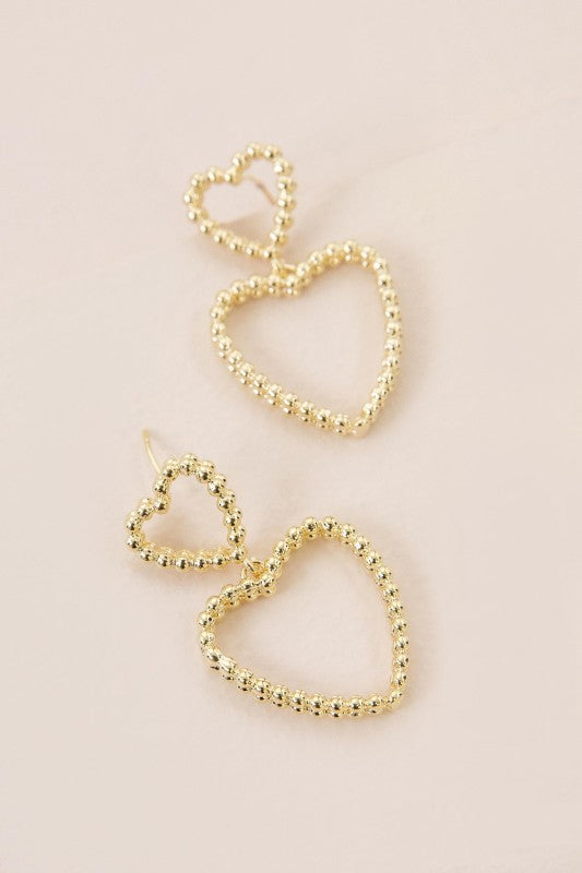 A gold heart outline with a beaded texture.