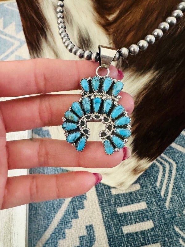 Handcrafted Turquoise & Sterling Silver Squash Blossom Necklace