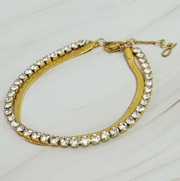 Introducing our Herringbone and Tennis Bracelet! Featuring a modern herringbone design that elegantly combines with a timeless tennis style, this bracelet is the perfect statement piece for any occasion.