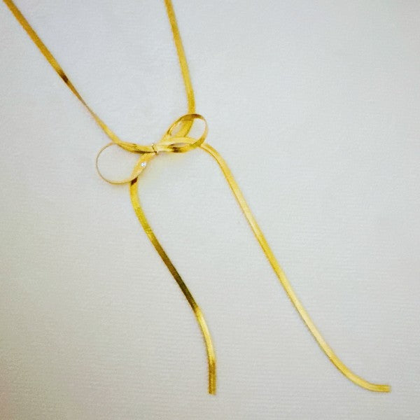 Experience the perfect blend of simplicity and elegance with this necklace. The delicate herringbone bow design exudes timeless charm while adding an extra touch of sophistication to any outfit.