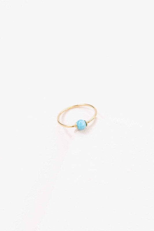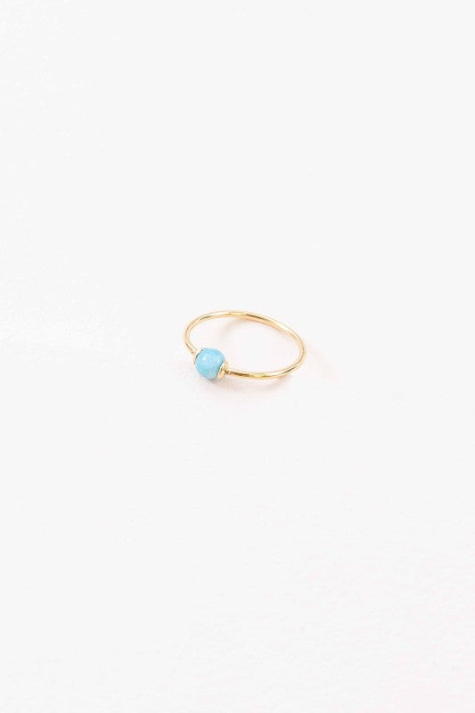 For all your minimalistic needs, but with a pop of color! A thin gold band with an ocean blue circle stone on top.
