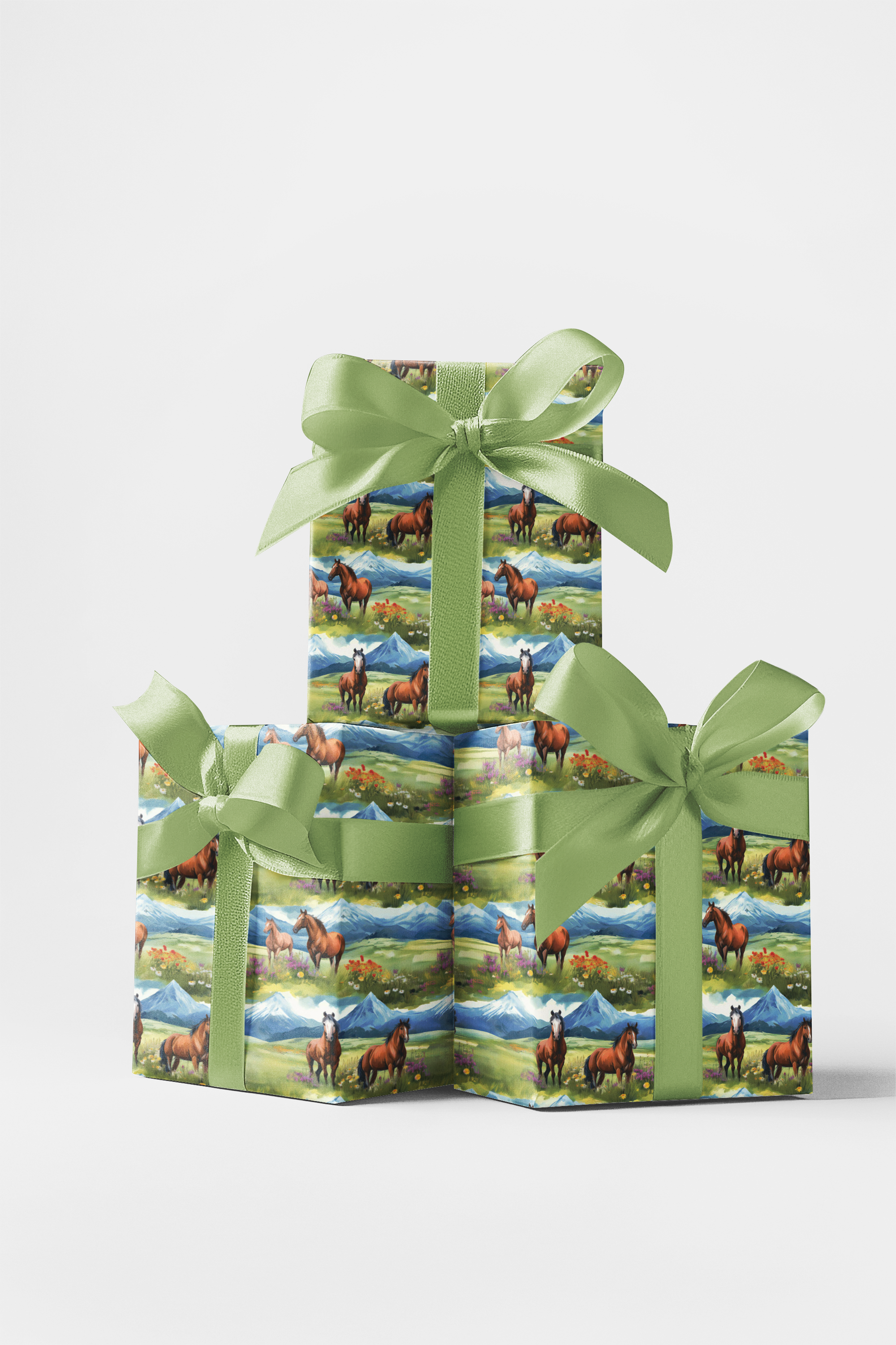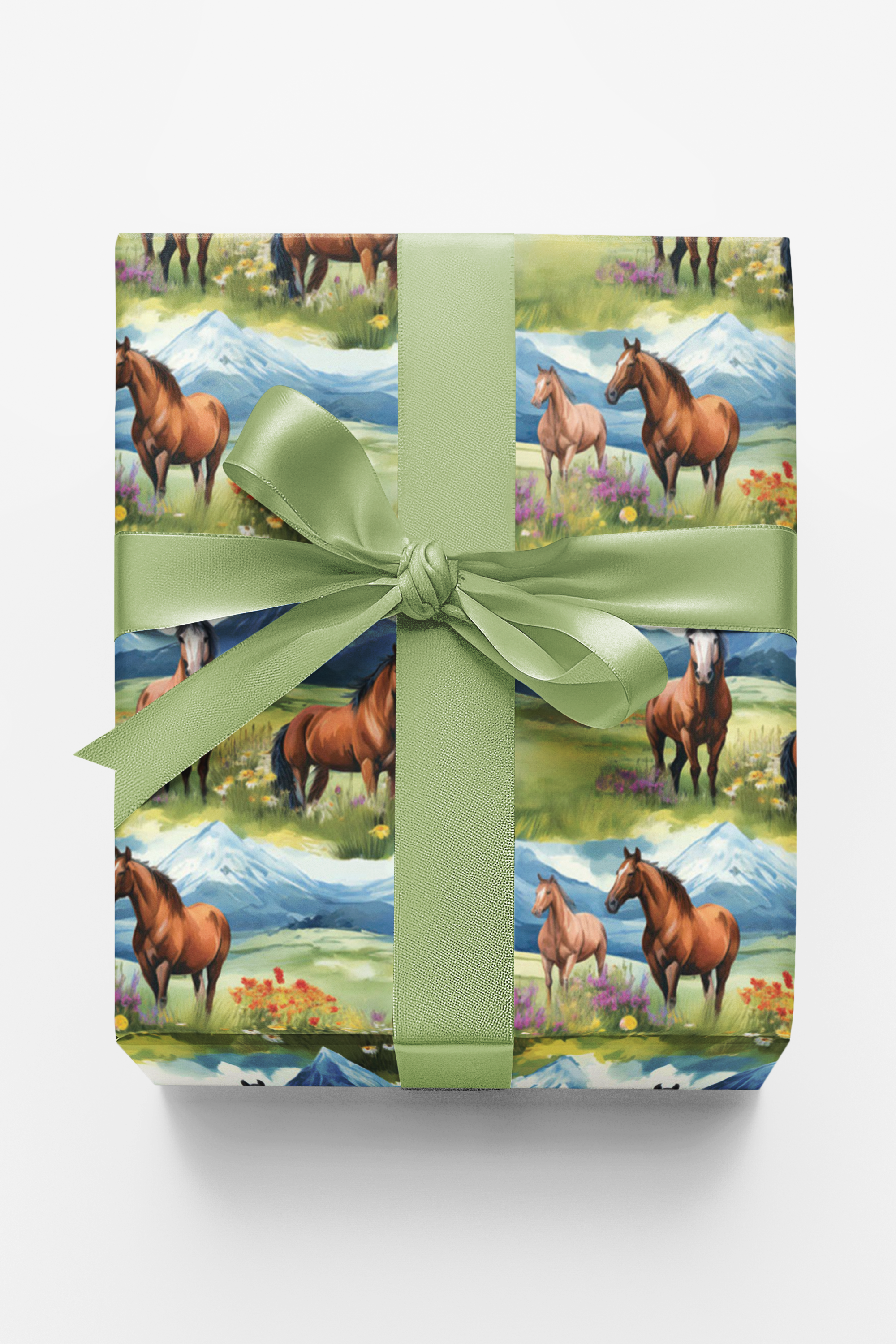 Celebrate the unmatched elegance of the Thoroughbred Horse with this refined wrapping paper design. Featuring the breed’s powerful, streamlined form running freely across lush grassfields with majestic mountains rising in the background, it captures both strength and serenity. Perfect for gifting to equestrian enthusiasts who appreciate beauty, speed, and the grandeur of nature, this design adds a timeless touch to every present.