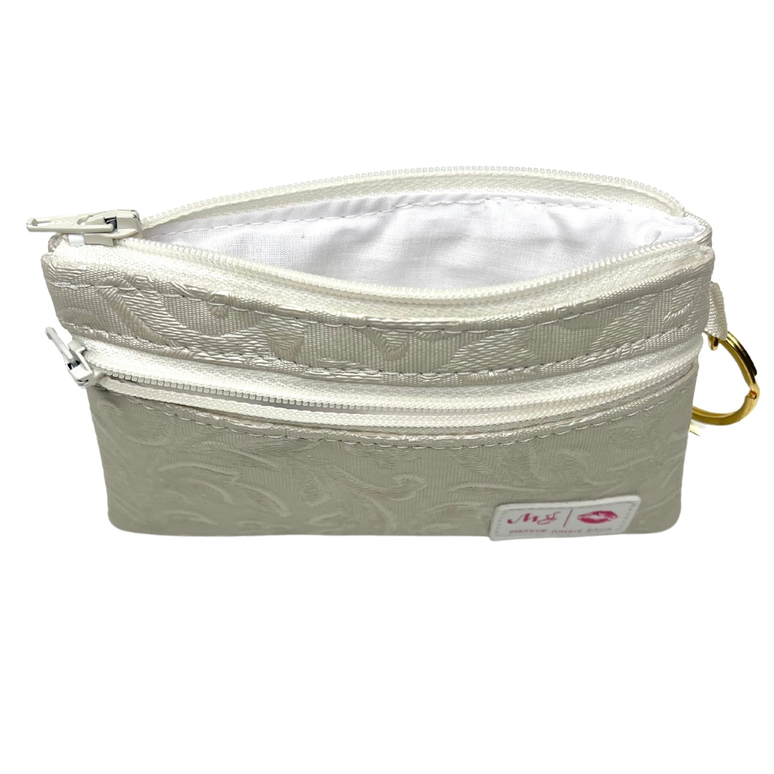 Our Zip it MJ Keychain is the perfect accessory to store credit cards, cash, jewelry, business cards, etc. It features two zipper pockets.