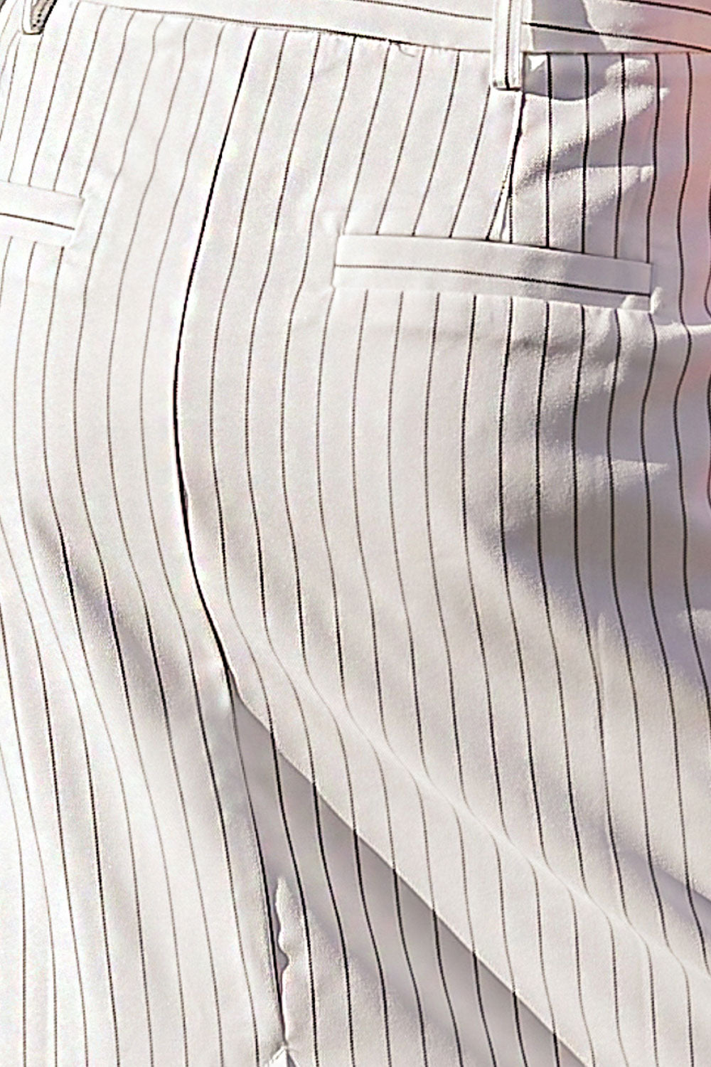 Indulge in our luxurious striped woven midi skirt, complete with a front closure, convenient side pockets, and a sultry back slit. Elevate your wardrobe with this sophisticated and exclusive piece, perfect for a night out on the town or a day at the office.. Matching top FT1019