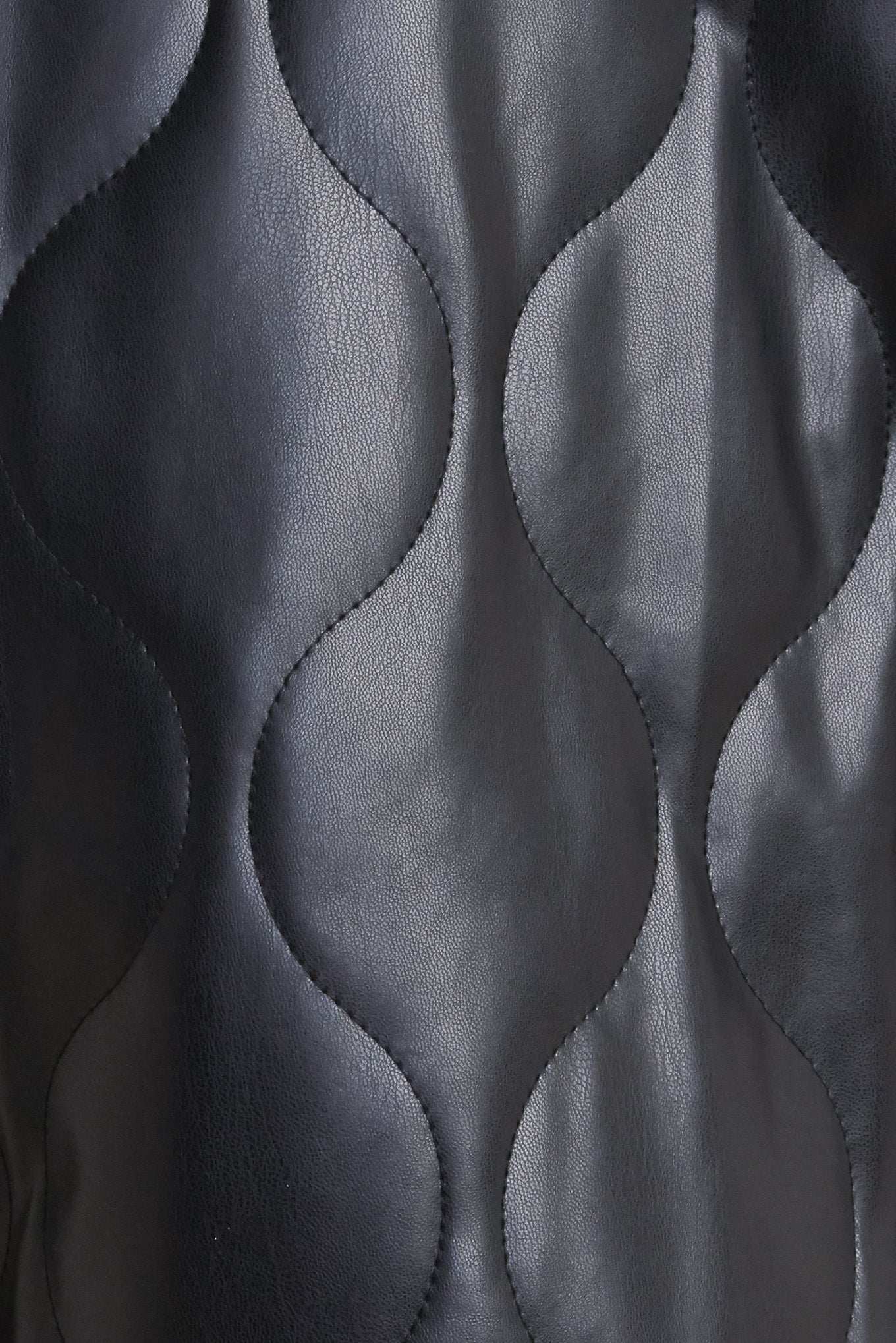 A quilted faux leather skort featuring front pockets and back zipper closure.