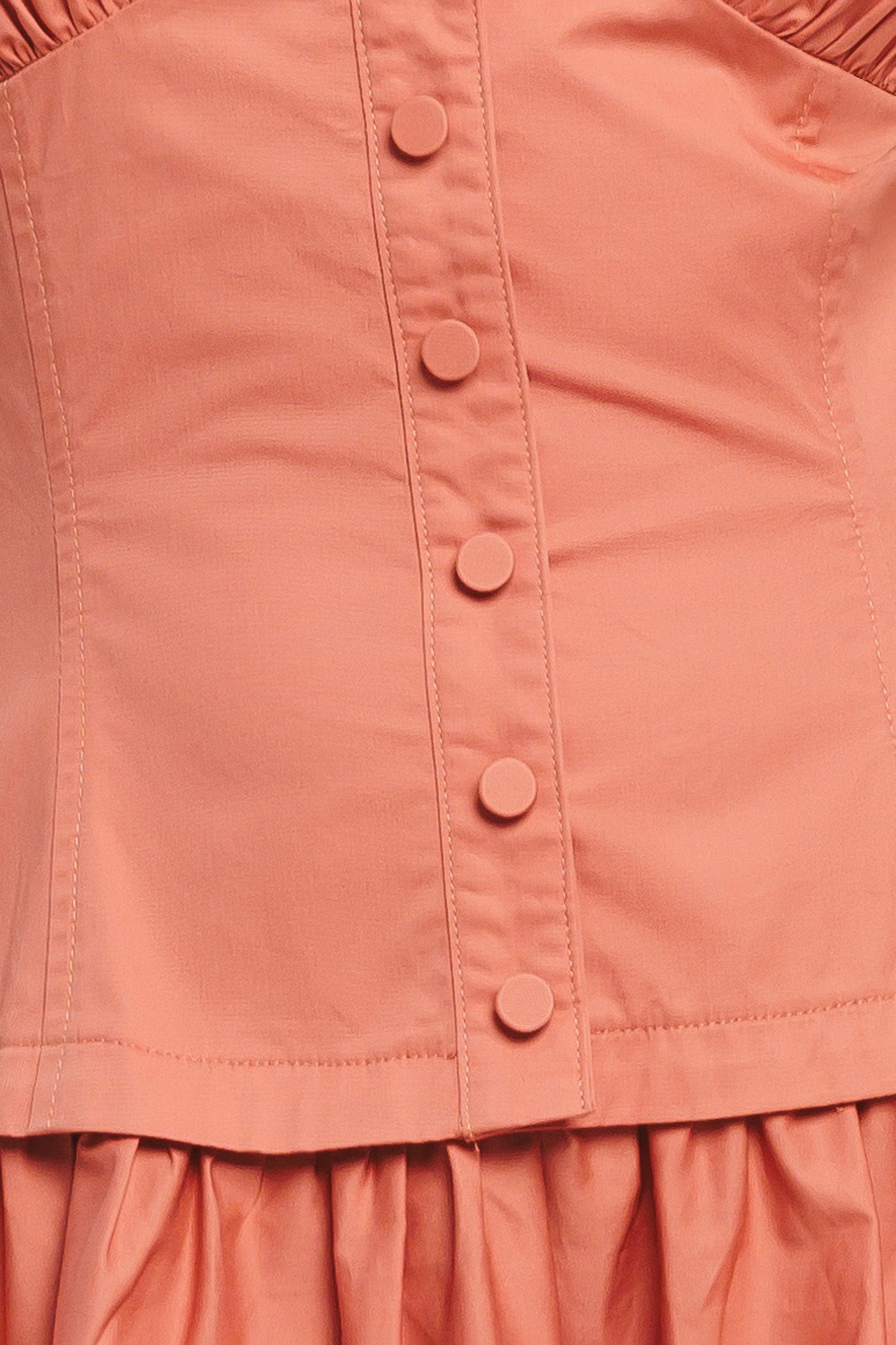A solid woven midi dress featuring halter neck with back neck button, front button detail, full skirt and back zipper closure
