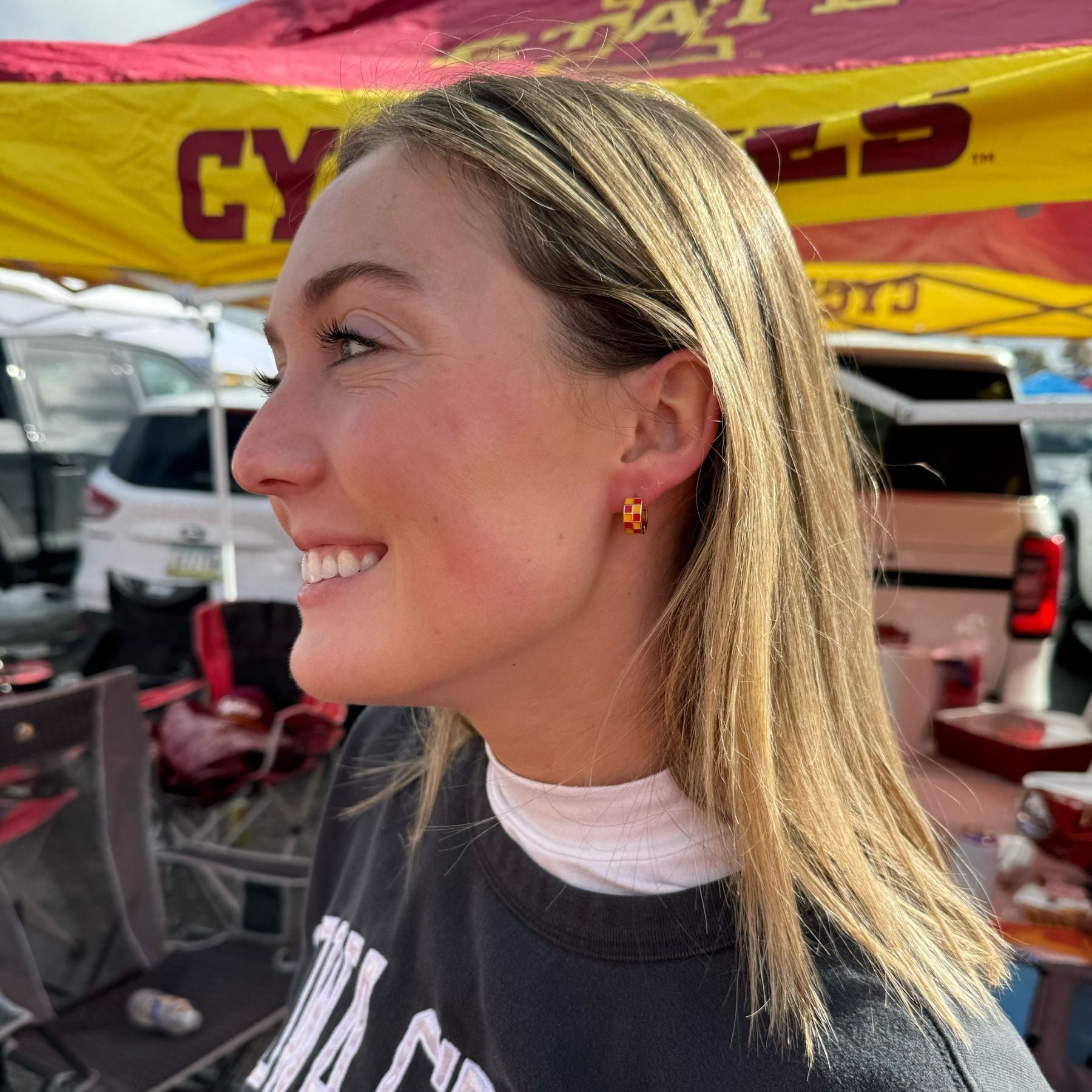 Gift it to your best friend, a proud alum, or keep it for yourself—this set is the ultimate blend of school pride and timeless style. This gameday-ready set includes three pairs of earrings, each crafted with gold hardware. Whether you're looking to make a bold statement or create a subtle, dainty ear stack, this versatile set has you covered.