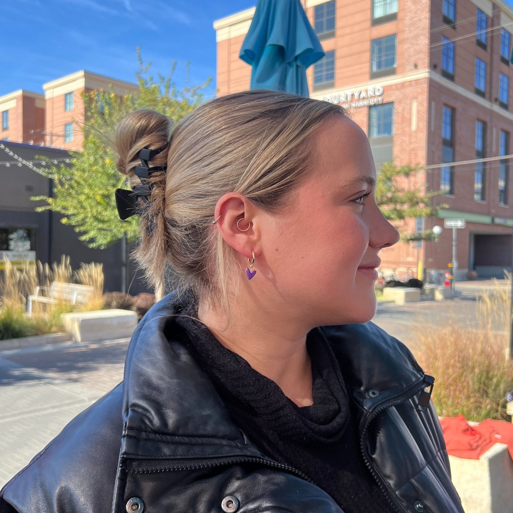 Gift it to your best friend, a proud alum, or keep it for yourself—this set is the ultimate blend of school pride and timeless style. This gameday-ready set includes three pairs of earrings, each crafted with gold and silver hardware. Whether you're looking to make a bold statement or create a subtle, dainty ear stack, this versatile set has you covered.