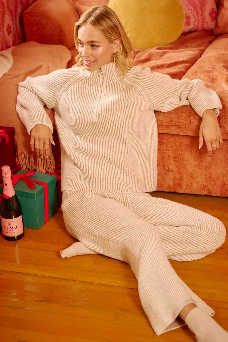 This stylish collared top features a unique two-tone ribbed texture knit design. The zip-up detailing adds a modern touch to the classic silhouette. Pair it with your favorite bottoms for a chic and versatile look. The soft fabric ensures comfort for all-day wear. Elevate your wardrobe with this trendy and sleek top.