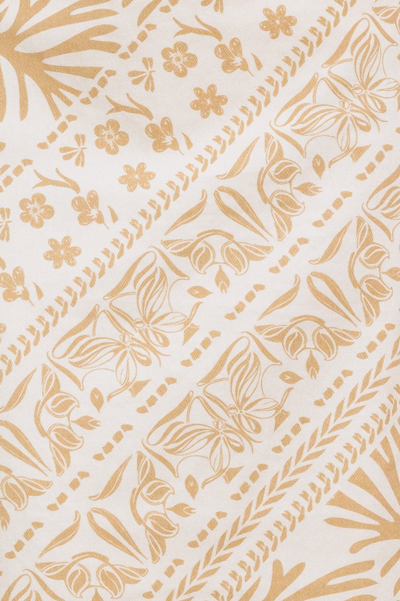 A printed woven midi dress featuring tube top, H line skirt and back zipper closure