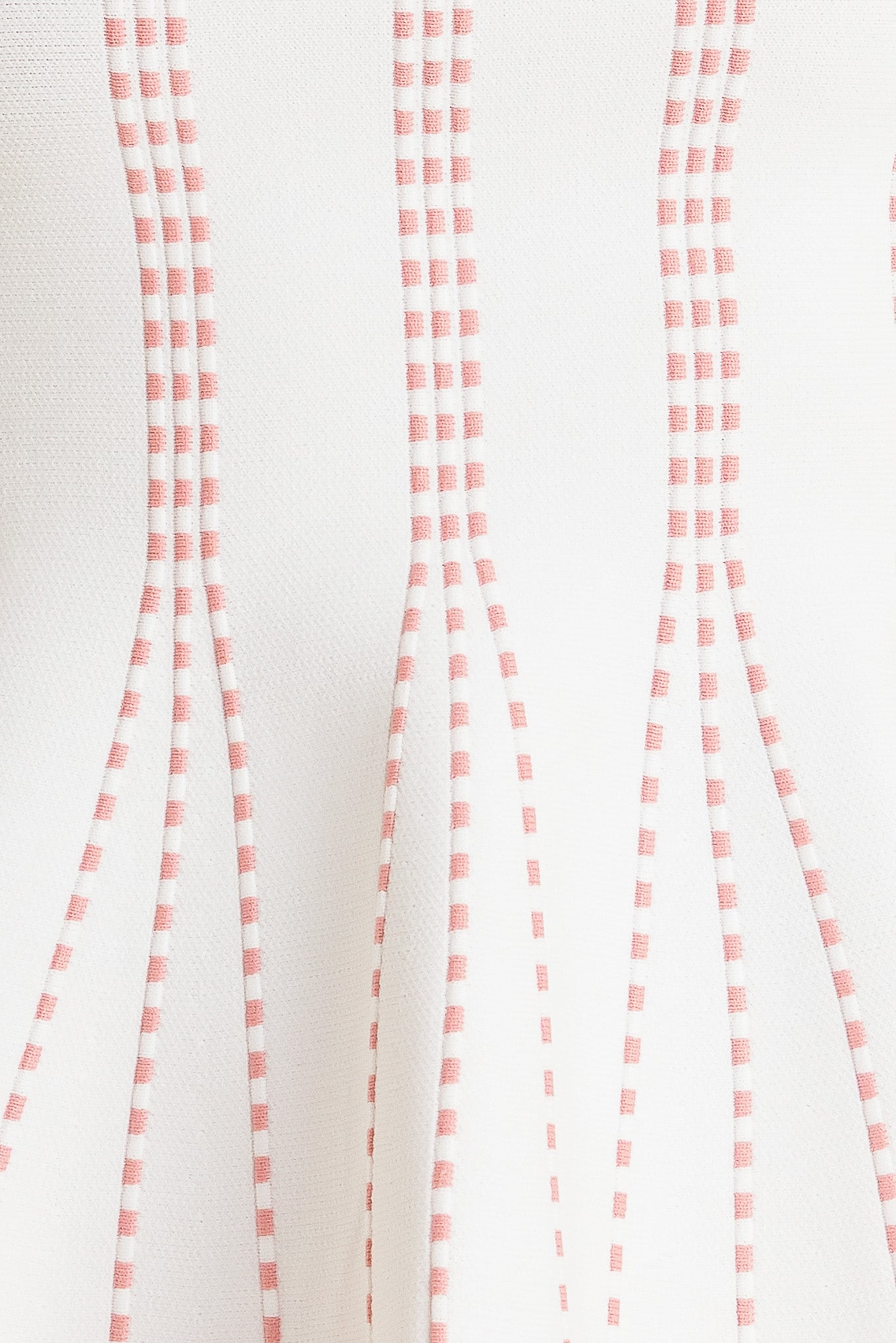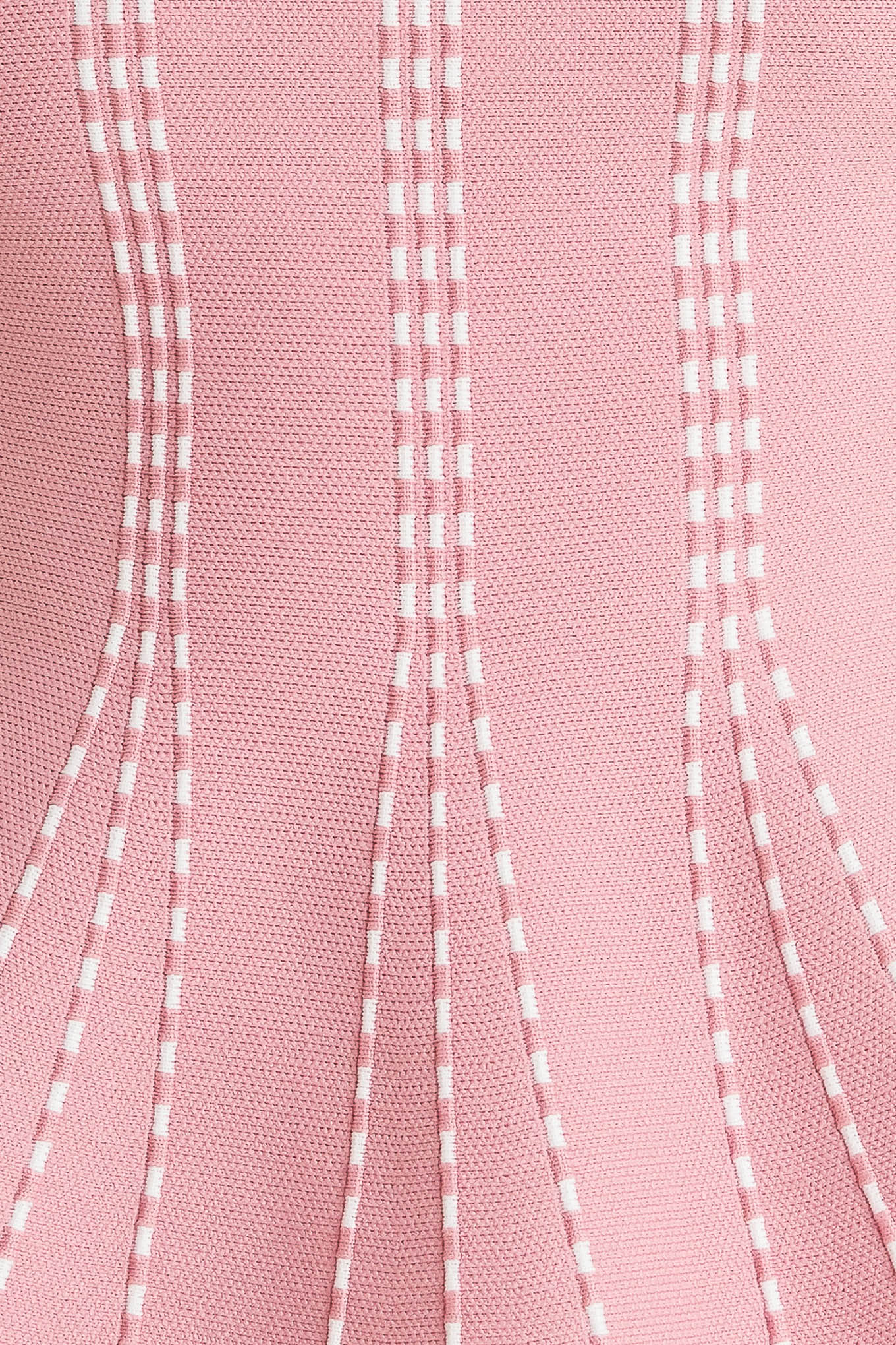 A jacquard sweater top featuring round neckline, short sleeve and peplum