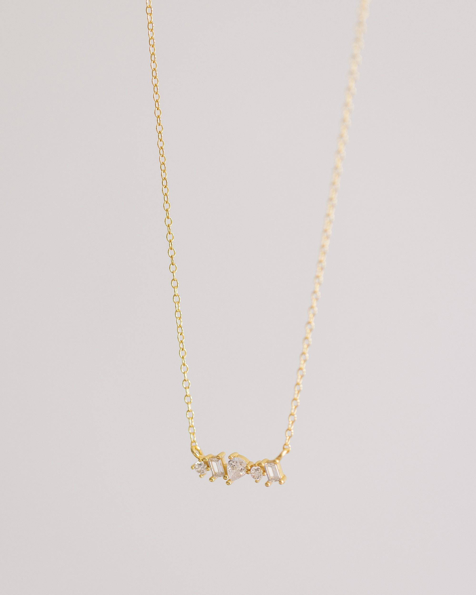 Glow with grace in this beautiful Gold Crystal Bar Necklace. Crafted with gold vermeil, it is adorned with a row of crystals. Perfect for any special occasion, this necklace will add a touch of sparkle to your look.