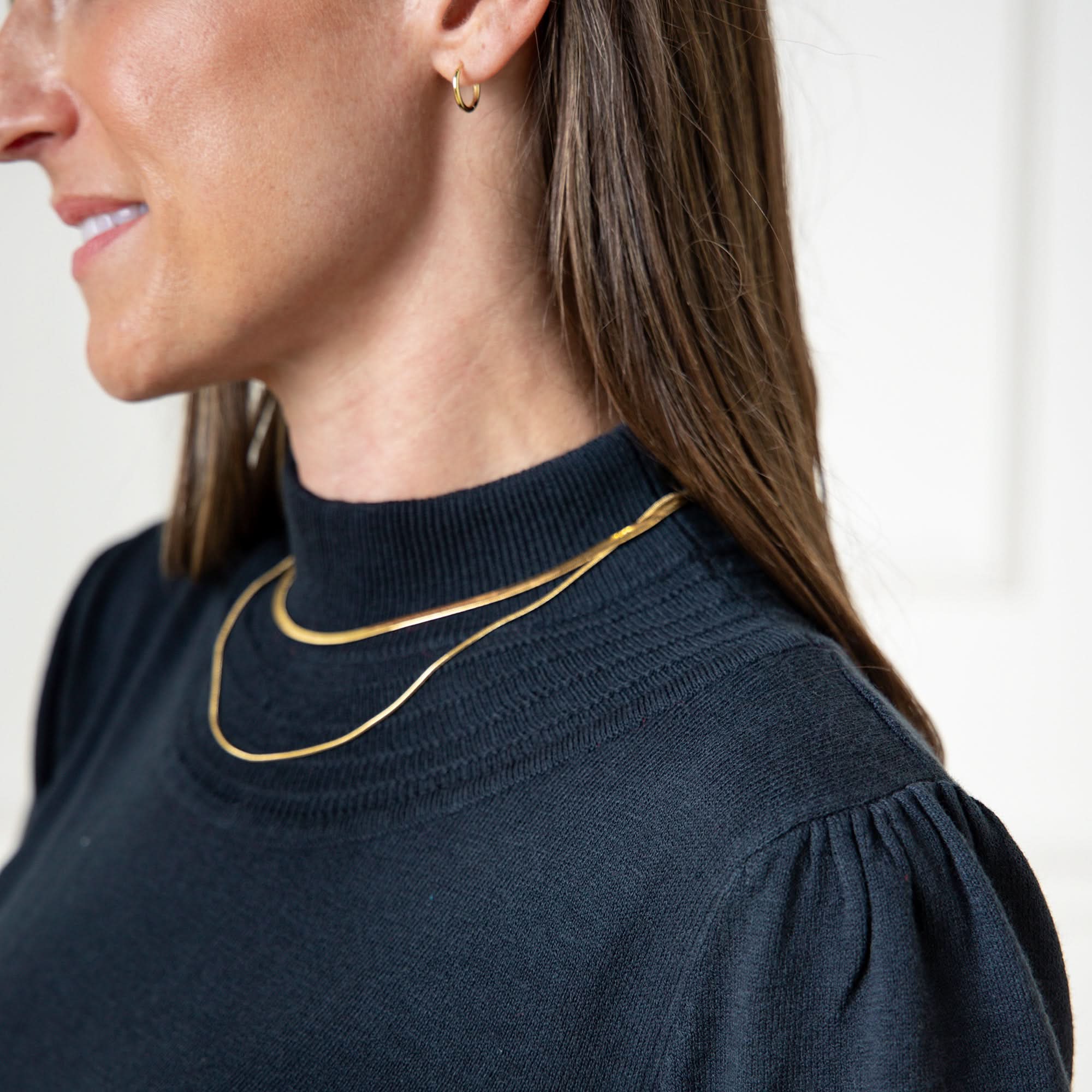 The epitome of effortless chic. Our sophisticated sweater dress in soft organic cotton exudes timeless charm. Features a super flattering shape, a mock neck, and romantic belled sleeves. A special stitch surrounds the neckline and cuffs for that extra touch.