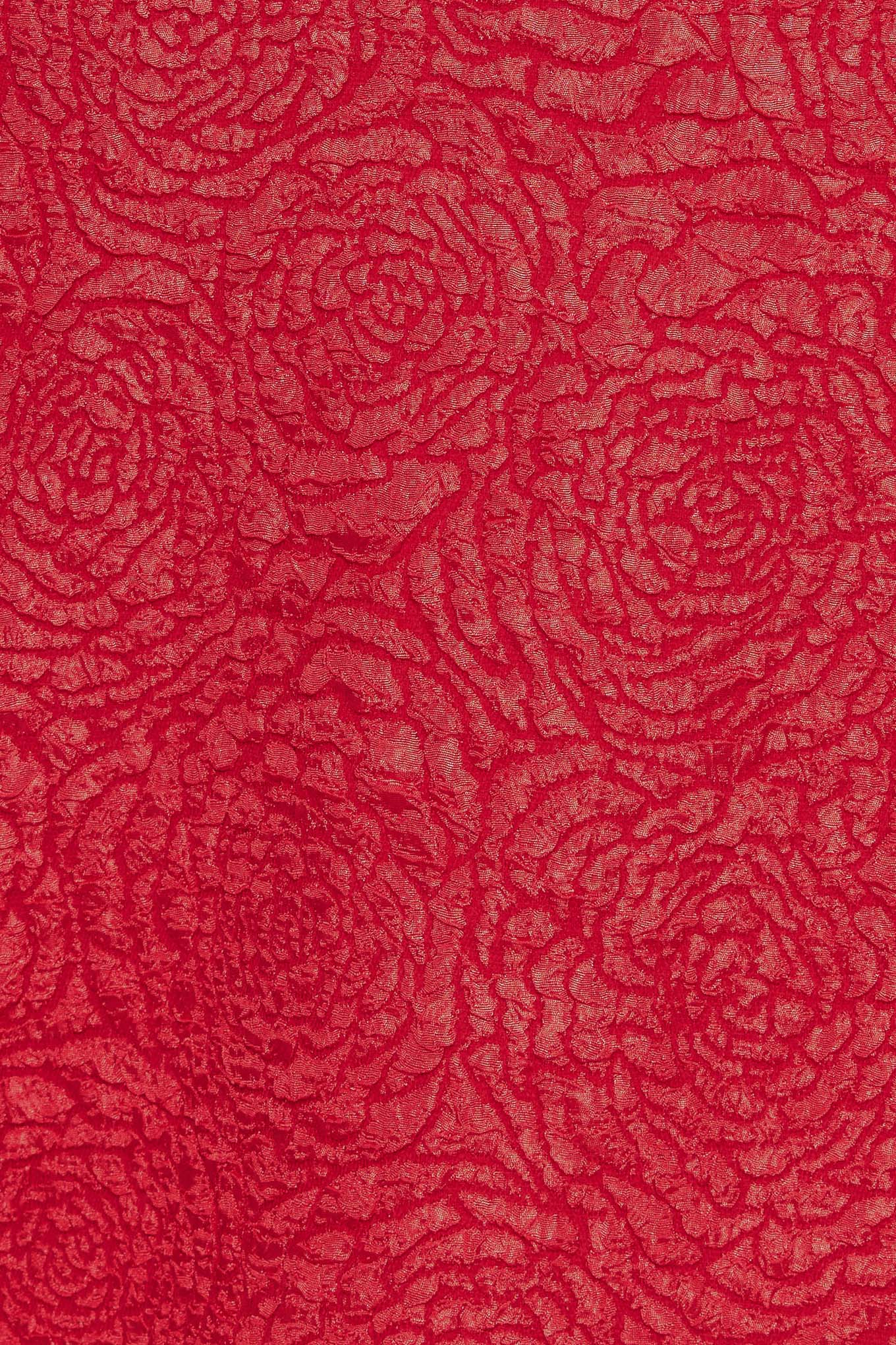 A textured woven mini dress featuring halter neckline with jewel embellishment, double ruffled hem and back neck button closure