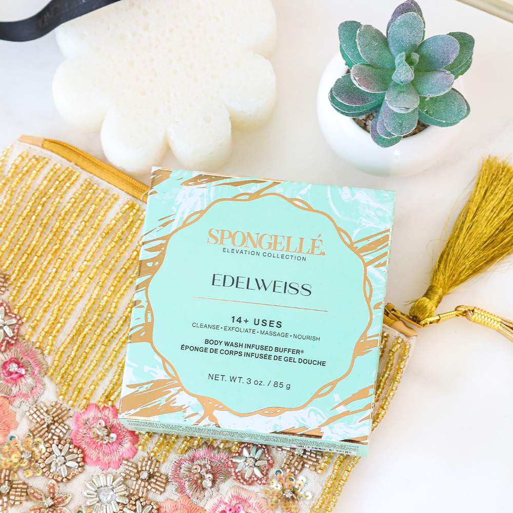 Introducing Edelweiss Body & Travel Buffer Set, featuring a full-size Body Wash Infused Buffer® (14+ washes) and a travel size Spongette (7+ washes). This alpine fresh scent blends crisp fruits, cool greens, and soft woods for a clean, uplifting experience. Each buffer gently cleanses, exfoliates, and hydrates with time-released body wash, creating a rich lather that leaves skin silky, nourished, and beautifully refreshed. This set is originally valued at $32.