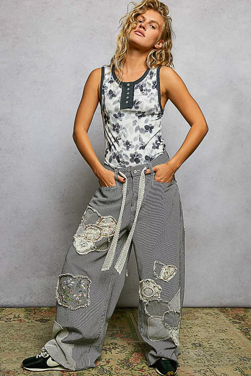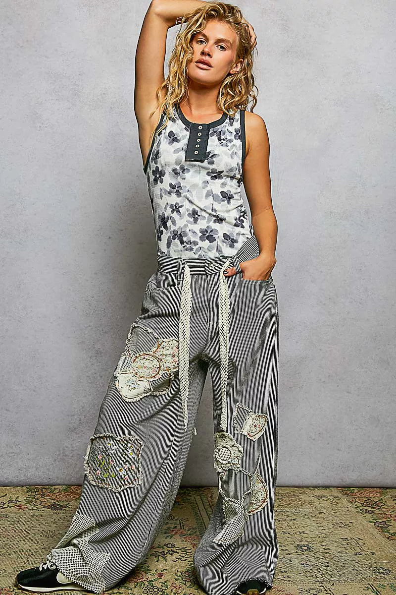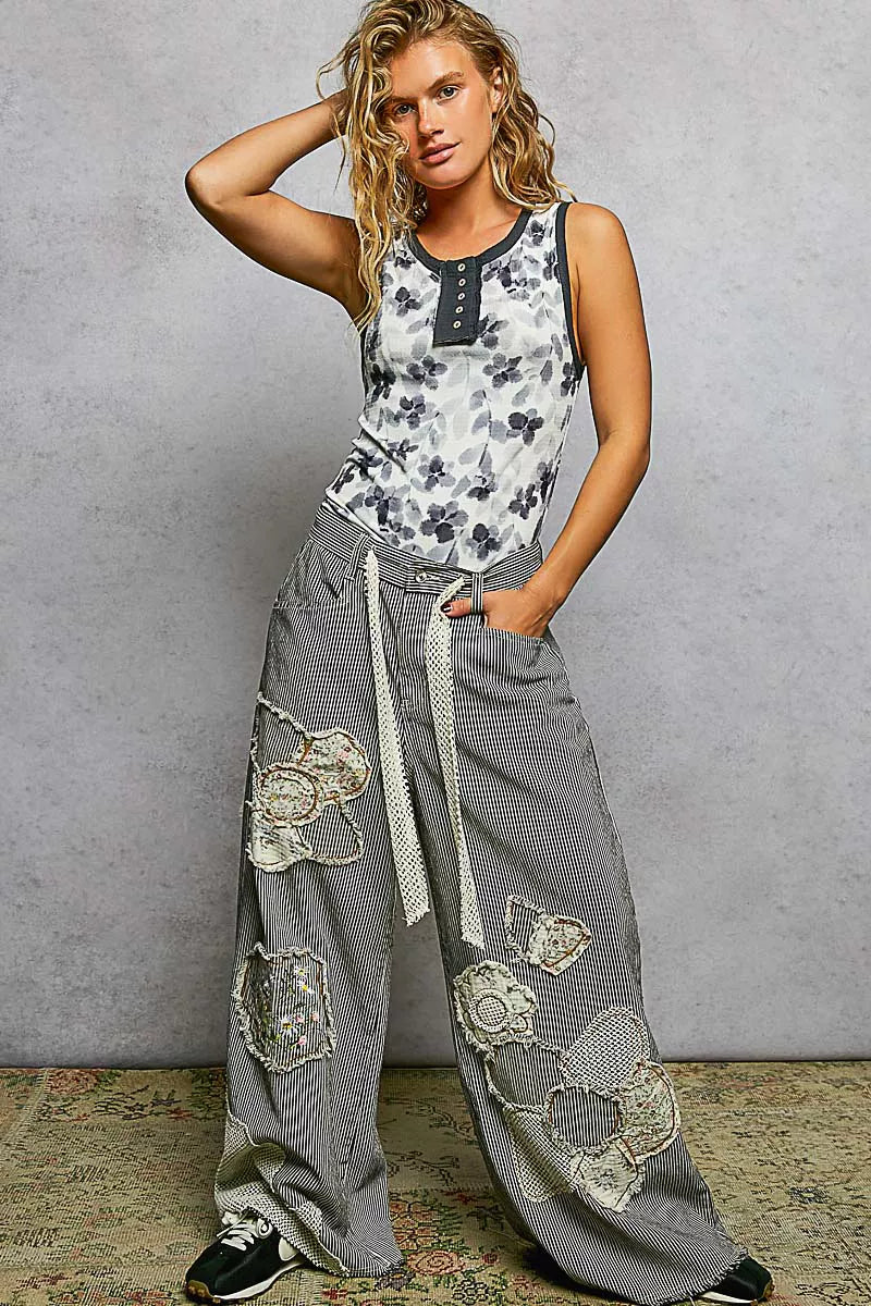 This sleeveless top is designed with a round neck and relaxed fit for a casual and easygoing look. The ribbed fabric adds texture and dimension to the design. A subtle floral pattern brings a touch of femininity and charm to the top. The simple yet elegant style makes it versatile for various occasions. Pair this top with your favorite bottoms for a cute and stylish outfit.