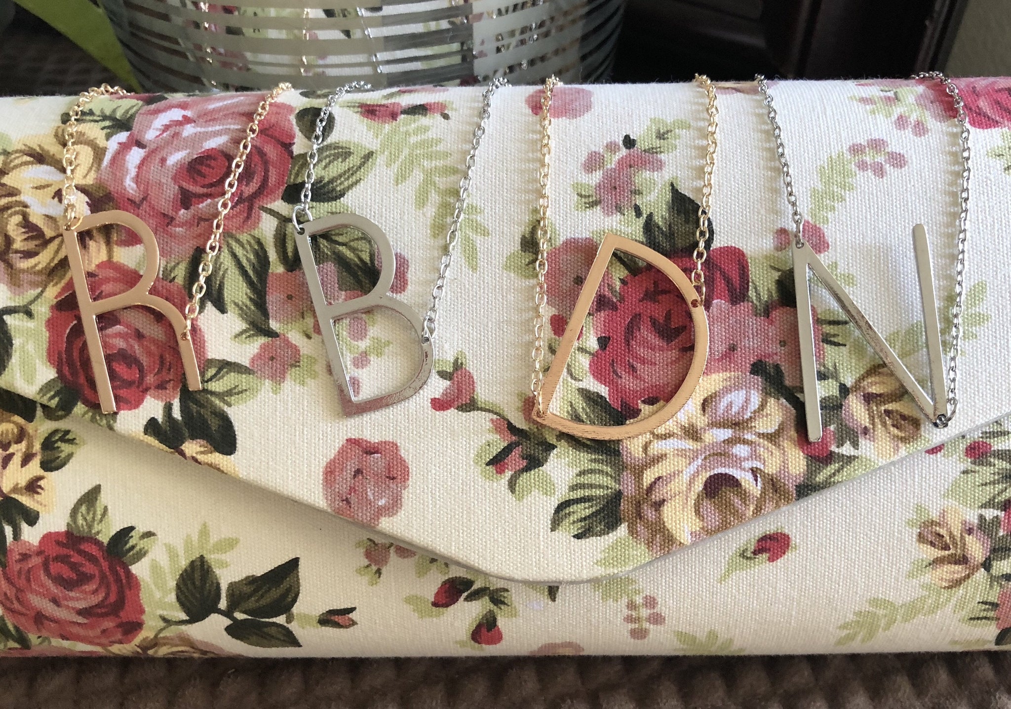 Eye catching letter necklace available in 18k gold plated stainless steel. 18"chain Letter is approx. 1 1/2".