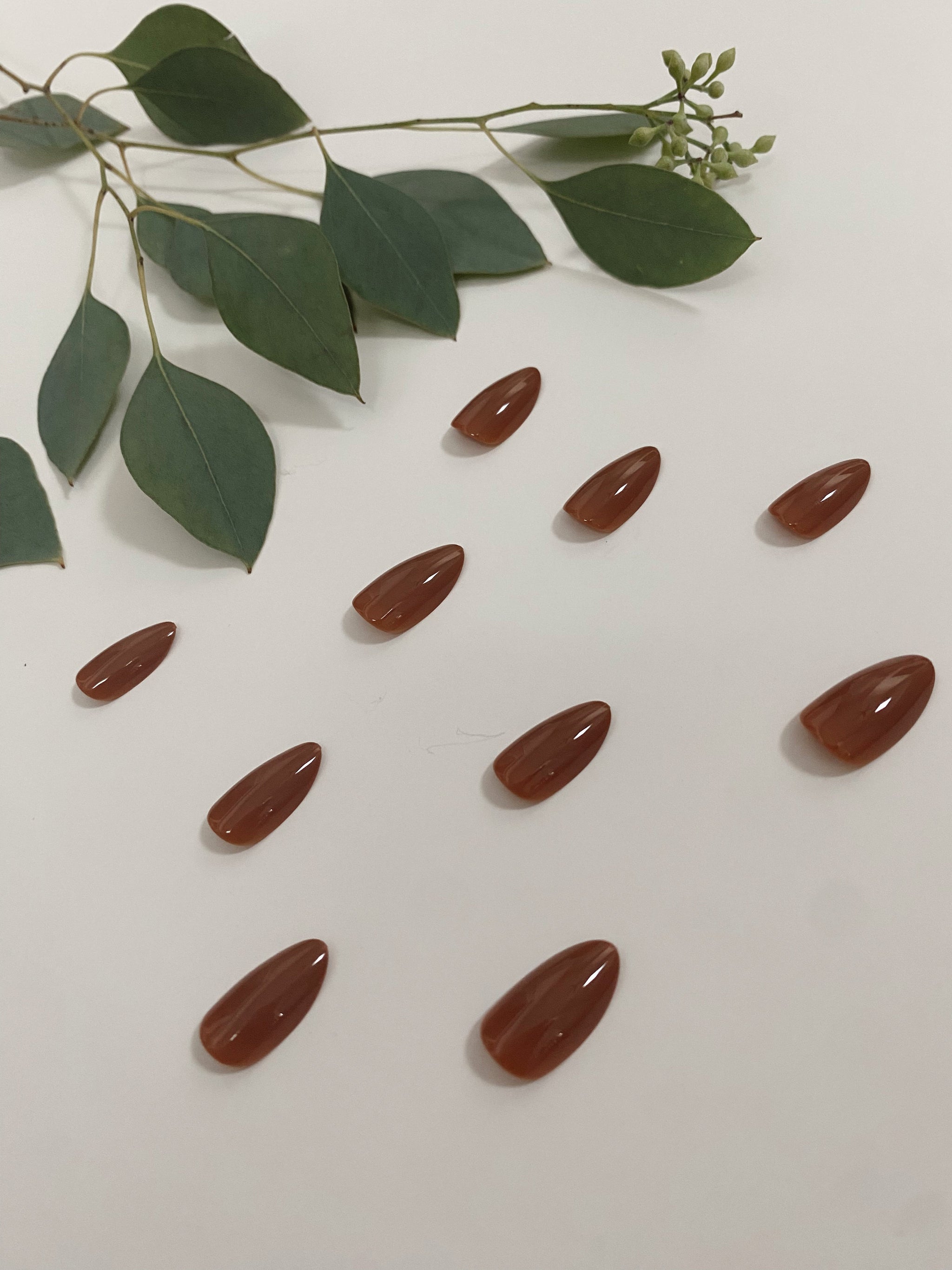 Get your nails ready for a cozy fall day with our Spiced Cider press on nails. These pretty orangey brown nails are perfect for adding a touch of warmth and spice to your look!