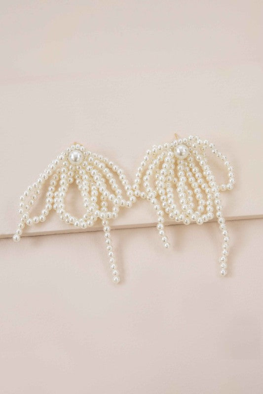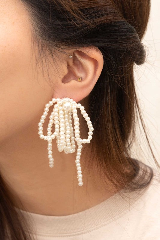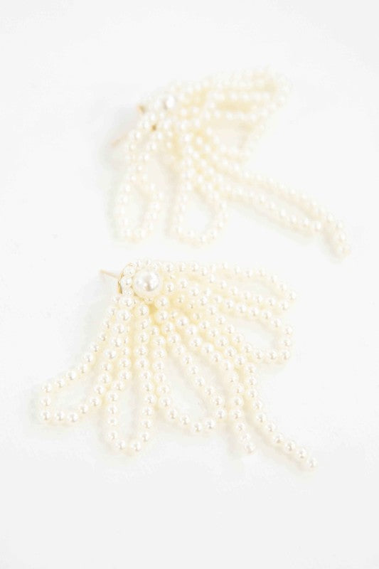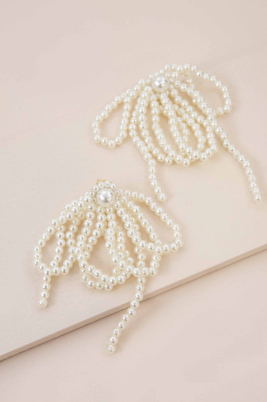 A cluster of stringed pearls that drop down to create a look of elegance.
