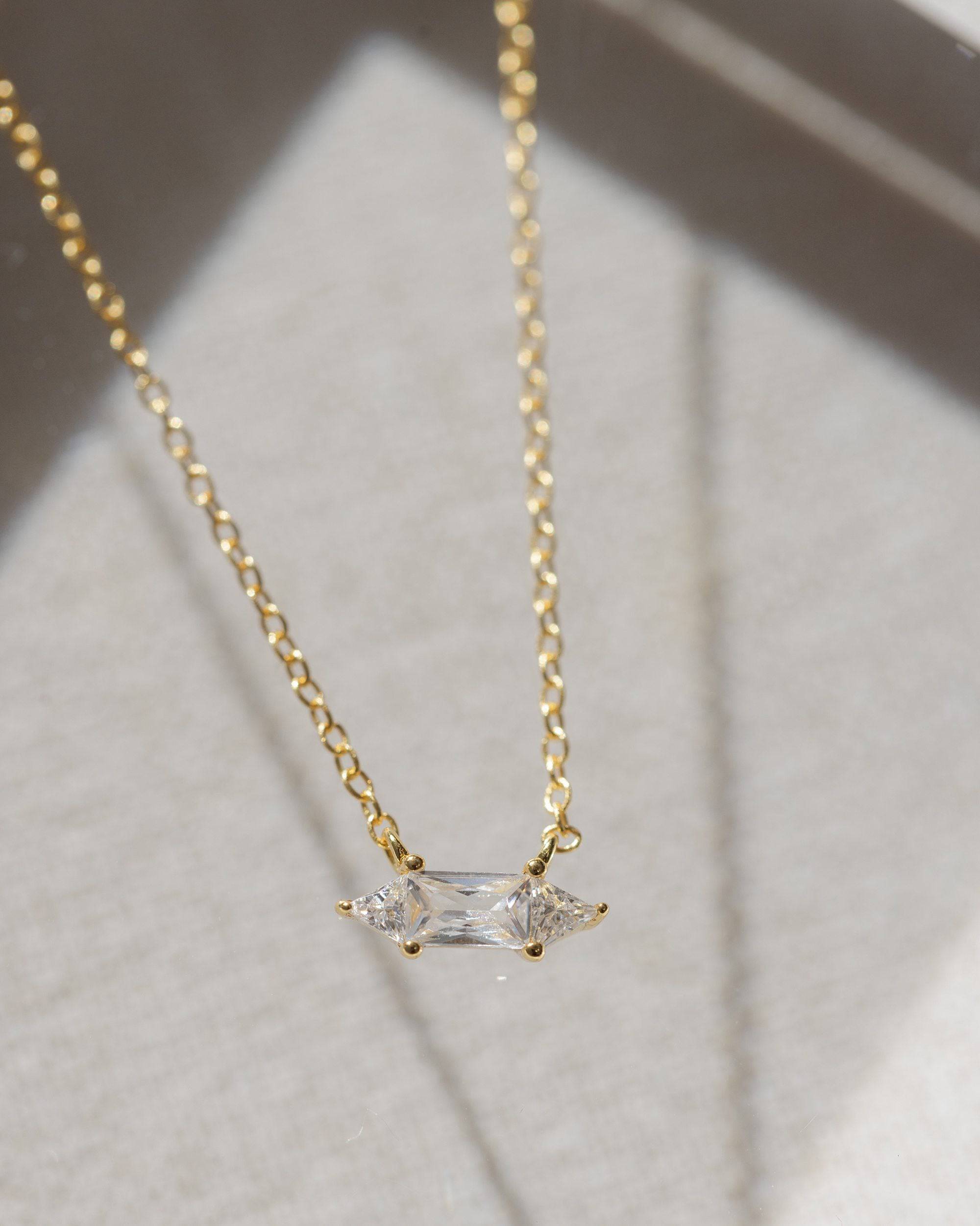 Elevate your style game with our Crystal Nantucket Necklace. Crafted with 14k gold vermeil and a stunning moissanite crystal bar, this necklace offers timeless elegance. Its adjustable chain allows for customizable length.