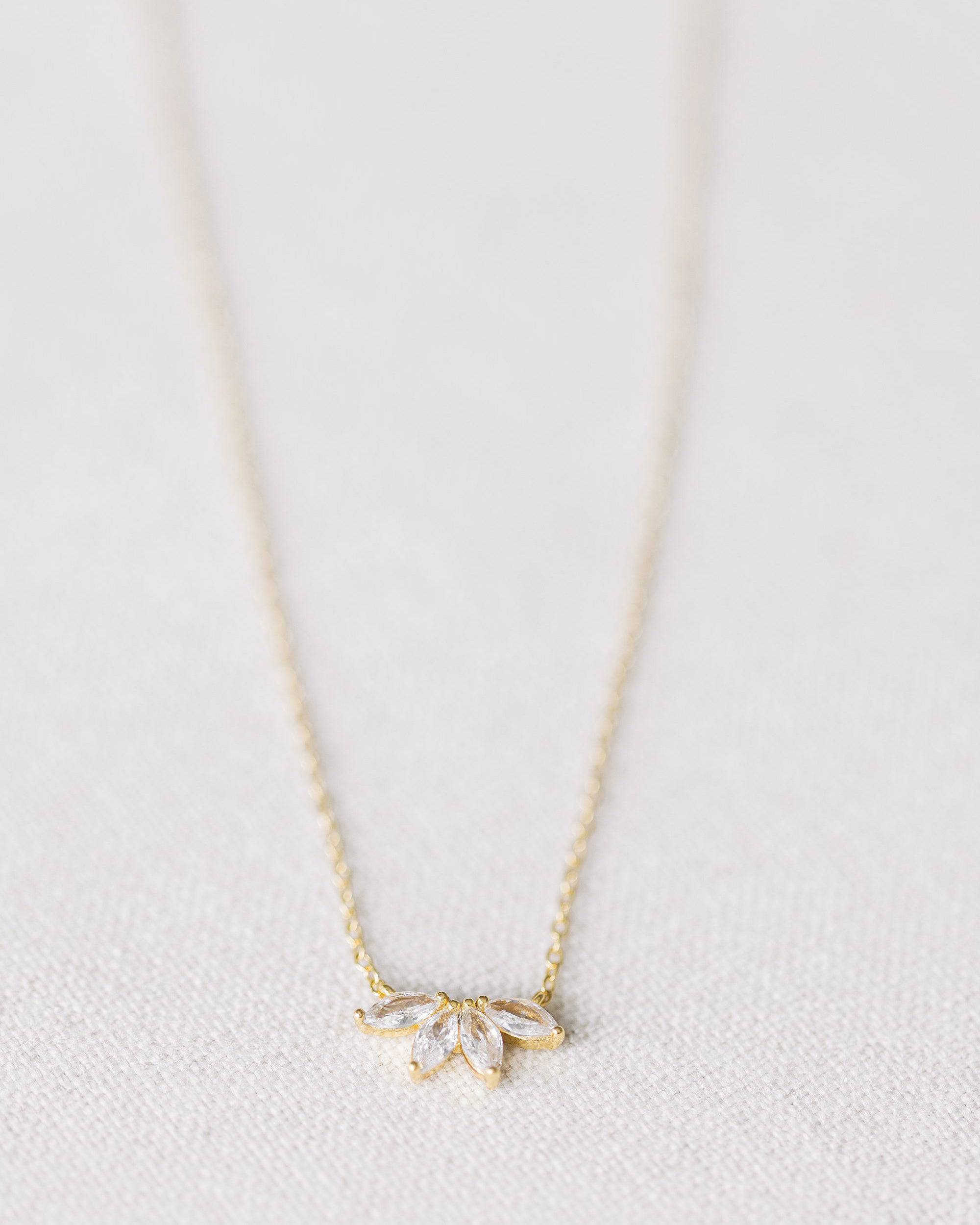 This stunning Gold Crystal Flower Necklace is crafted from gold vermeil with a beautiful crystal flower.
