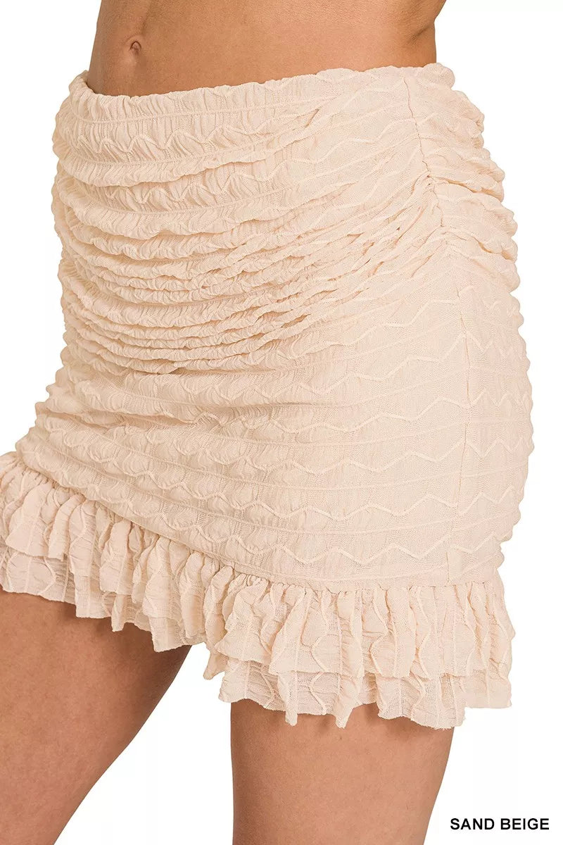 This ruched mini skirt with built-in shorts offers a trendy and practical design for your wardrobe. The ruched detailing adds texture and visual interest to the skirt, creating a flattering silhouette. With built-in shorts, this piece provides comfort and ease of movement, making it perfect for active days. The mini length adds a touch of flirtiness to your look, ideal for both casual and dressier occasions. Stay stylish and comfortable all day long with this versatile ruched mini skirt with built-in shorts.
